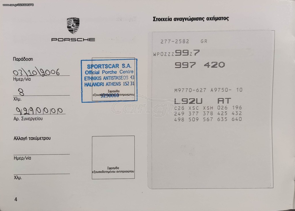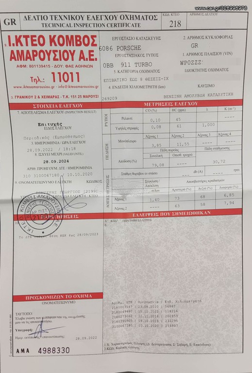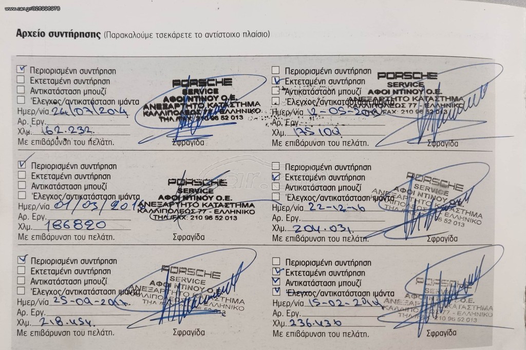 | • ΗΜ/ΝΙΑ ΠΡΩΤΗΣ ΑΔΕΙΑΣ 03/10/2007 • ΕΛΛΗΝΙΚΗΣ ΑΝΤΙΠΡΟΣΩΠΕΙΑΣ ! • ΑΠΟ ΠΟΛΥ ΣΧΟΛΑΣΤΙΚΟ ΙΔΙΟΚΤΗΤΗ ! • ΑΤΡΑΚΑΡΙΣΤΟ - ΑΡΙΣΤΟ ! • ΔΕΚΤΟΣ ΕΛΕΓΧΟΣ ! • ΠΛΗΡΕΣ ΑΡΧΕΙΟ SERVICE ! • ΒΙΟΛΟΓΙΚΟΣ ΚΑΘΑΡΙΣΜΟΣ ΚΑΙ ΓΥΑΛΙΣΜΑ ΜΕ ΤΗΝ ΠΑΡΑΔΟΣΗ ! • • • Εξοπλισμός Porsche 911 Carrera Turbo • • • • Αυτόματο & Σειριακό κιβώτιο • Κεραμικά Φρένα • Ηλεκτρικά Καθίσματα με μνήμη οδηγού • Προστατευτικά μαρσπιέ αλουμινίου με λογότυπο Τurbo Φωτιζόμενο • Φώτα Bi-Χenon με Πλυστικά Φανών • Πακέτο sport chrono • Navigation PCM • Αλεξήλια με φωτιζόμενο καθρέπτη • Εργοστασιακός Συναγερμός • Δερμάτινο σαλόνι • Μεγαλο πακετο Δερματος ( Ταμπλό , Πόρτες ,Κονσόλα,Μαρσπιε ) • Sport δερμάτινο τιμόνι 3 ακτίνων με χειριστήρια αλλαγής ταχυτήτων F1 • Αυτόματος κλιματισμός • Ζάντες 19’ ιντσών • 2 πτυσσόμενες ποτηροθήκες εμπρός • Επένδυση οροφής με alcantara • Park assist πίσω • Κεντρικό κλείδωμα με τηλεχειρισμό • Υποβραχιόνιο • Όργανο πολλαπλών ενδείξεων με κεντρική οθόνη • Ανάρτηση P.A.S.M. • Ηχοσύστημα BOSE • Cruise Control • Τηλέφωνο • Bluetooth • USB • Πισω Παρ Μπριζ με Υαλοκαθαριστήρα |