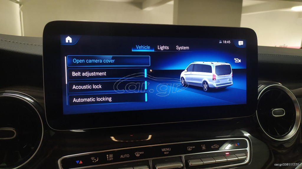 | Συρόμενες πόρτες χ2 ,Συρόμενη πόρτα αριστερά, Συρόμενη πόρτα δεξιά • • ΕΠΊΔΕΙΞΗ ΚΑΤΌΠΙΝ ΡΑΝΤΕΒΟΎ • • • • ΗΜ/ΝΙΑ ΠΡΩΤΗΣ ΑΔΕΙΑΣ 03/08/2020 • ΕΛΛΗΝΙΚΗΣ ΑΝΤΙΠΡΟΣΩΠΕΙΑΣ ! • ΕΝΑΣ ΙΔΙΟΚΤΗΤΗΣ ! • ΑΤΡΑΚΑΡΙΣΤΟ - ΑΡΙΣΤΟ ! • ΔΕΚΤΟΣ ΕΛΕΓΧΟΣ ! • ΠΛΗΡΕΣ ΑΡΧΕΙΟ SERVICE ΑΝΤΙΠΡΟΣΩΠΕΙΑΣ ! • ΒΙΟΛΟΓΙΚΟΣ ΚΑΘΑΡΙΣΜΟΣ ΚΑΙ ΓΥΑΛΙΣΜΑ ΜΕ ΤΗΝ ΠΑΡΑΔΟΣΗ ! • • • Εξοπλισμός V-CLASS 300d 4-Matic Luxury Crewbus • • • • Αυτόματο κιβώτιο 9G-TRONIC • Πακέτο φωτισμού • Ζάντες αλουμινίου 19' • Κεντρική κονσόλα με ψυγείο • Αντικλεπτικό πακέτο • Αυτόματος κλιματισμός 3 ζώνων ( THERMOTRONIC ) • Ηλεκτρικά καθίσματα με μνήμες εμπρός και μεσαία σειρά (2+2) • Θερμαινόμενα και κλιματιζόμενα καθίσματα εμπρός και πίσω στην μεσαία σειρά • Blind assist εξωτερικών καθρεπτών • Δερμάτινο πολυλειτουργικό τιμόνι 3 ακτίνων • Κεντρικό κλείδωμα με τηλεχειρισμό για εμπρός, πίσω δεξιά πόρτα και χώρου αποσκευών • Αισθητήρες παρκαρίσματος • Κάμερα οπισθοπορείας 360* • Λειτουργιά ECO Start / Stop • Audio interface AUX - USB • Bluetooth® με λειτουργία audio streaming για μεταφορά μουσικής • Active Distance Assist DISTRONIC® • Active Steering Assist • Attention Assist • Πακέτο φωτισμού • Ambient lighting • Εμπρός φώτα LED Intelligent • Πίσω φώτα και φλάς LED • Αποσπώμενος εργοστασιακός κοτσαδόρος • Αριστερά και δεξιά ηλεκτρικές συρόμενες πόρτες |