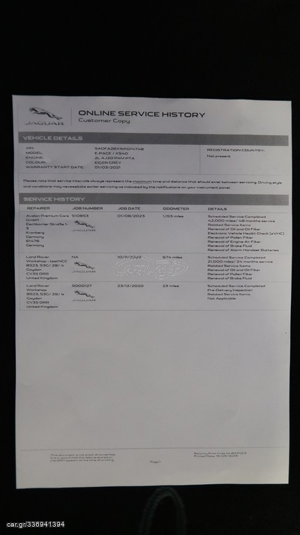 | • ΗΜ/ΝΙΑ ΠΡΩΤΗΣ ΑΔΕΙΑΣ 01/03/2021 • ΕΡΓΟΣΤΑΣΙΑΚΗ ΕΓΓΥΗΣΗ ΕΩΣ 01/03/2024 • ΑΤΡΑΚΑΡΙΣΤΟ - ΑΡΙΣΤΟ ! • ΑΡΧΕΙΟ SERVICE ΑΝΤΙΠΡΟΣΩΠΕΙΑΣ ! • ΒΙΟΛΟΓΙΚΟΣ ΚΑΘΑΡΙΣΜΟΣ ΚΑΙ ΓΥΑΛΙΣΜΑ ΜΕ ΤΗΝ ΠΑΡΑΔΟΣΗ ! • ΔΕΚΤΟΣ ΕΛΕΓΧΟΣ ! • • • ΔΥΝΑΤΌΤΗΤΑ ΚΑΙ ΧΡΟΝΟΜΙΣΘΩΣΗΣ • • • • • • ΔΥΝΑΤΟΤΗΤΑ ΑΝΑΛΥΣΗΣ ΤΟΥ ΤΙΜΟΛΟΓΙΟΥ ΓΙΑ ΕΤΑΙΡΕΙΕΣ • • • • • • • Ανάλυση εξοπλισμού E-PACE P250 AWD PANORAMA • • • • • Γυάλινη Οροφή Πανοραμική • Dynamic Drive Modes (4) • Δερμάτινο Σαλόνι • Αυτόματο και Σειριακό κιβώτιο ταχυτήτων • Σύστημα πολυμέσων Navigation • Touch Screen 12.3 TFT • Meridian Sound System • Ηλεκτρική ρύθμιση καθίσματος οδηγού & συνοδηγού • Εμπρός καθίσματα με μνήμες (3) • Θερμαινόμενα καθίσματα • Φώτα FULL LED JAGUAR TECHONOLOGY • Ζάντες αλουμινίου 20' • Αυτόματος κλιματισμός 2 ζώνων • Δερμάτινο πολυλειτουργικό τιμόνι με χειριστήρια αλλαγής ταχυτήτων • Θερμαινόμενο τιμόνι • Υαλοκαθαριστήρες με αισθητήρα βροχής • Αισθητήρας φώτων • Σύστημα αντιολίσθησης τροχών (ASR) • Ηλεκτρονικό πρόγραμμα ευστάθειας (ESP) • Κεντρικό υποβραχιόνιο εμπρος με αποθηκευτικό χώρο • Κεντρικό υποβραχιόνιο πίσω • Κεντρικό κλείδωμα • Keyless Access • Keyless-Go • Εσωτερικά προστατευτικά μαρσπιέ αλουμινίου φωτιζόμενα με λογότυπο Jaguar • Cruise Control • Αισθητήρες παρκαρίσματος εμπρός & πίσω • Κάμερα 360° View • Extra Κάμερα στην πίσω κεραία • ISOFIX - σύστημα ασφάλισης παιδικών καθισμάτων • Αλεξήλια με φωτιζόμενο καθρέπτη • Λειτουργιά ECO Start / Stop • Audio interface USB + Type C • Bluetooth • Bluetooth® με λειτουργία audio streaming για μεταφορά μουσικής • Σύστημα ελέγχου πίεσης ελαστικών • Ασύρματη φόρτιση κινητού (Wireless charging) • Όργανο πολλαπλών ενδείξεων με κεντρική έγχρωμη οθόνη dot matrix • Ηλεκτρικό χειρόφρενο • Ηλεκτρικά ρυθμιζόμενοι και ανακλινόμενοι καθρέπτες • Ηλεκτρικό άνοιγμα και κλείσιμο το χώρου αποσκευών • Ψηφιακή ραδιοφωνική λήψη (DAB) • Lane Assist - Σύστημα προειδοποίησης αλλαγής λωρίδας κυκλοφορίας • Hill Assist • Head up display • Εσωτερικός και εξωτερικοί καθρέπτες αυτόματα αντιθαμβωτικοί • Εσωτερικός καθρέπτης με οθόνη για την κάμερα οπισθοπορίας της πίσω κεραίας |