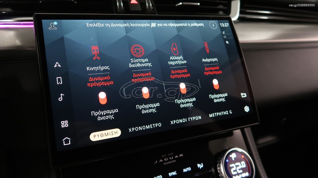 | • ΗΜ/ΝΙΑ ΠΡΩΤΗΣ ΑΔΕΙΑΣ 22/2/2022 • ΑΡΙΣΤΟ • ΑΤΡΑΚΑΡΙΣΤΟ • ΔΕΚΤΟΣ ΕΛΕΓΧΟΣ • ΠΛΗΡΕΣ ΑΡΧΕΙΟ SERVICE ΑΝΤΙΠΡΟΣΩΠΕΙΑΣ • ΒΙΟΛΟΓΙΚΟΣ ΚΑΘΑΡΙΣΜΟΣ ΚΑΙ ΓΥΑΛΙΣΜΑ ΜΕ ΤΗΝ ΠΑΡΑΔΟΣΗ • • • ΔΥΝΑΤΌΤΗΤΑ ΚΑΙ ΧΡΟΝΟΜΙΣΘΩΣΗΣ • • • • • • ΔΥΝΑΤΟΤΗΤΑ ΑΝΑΛΥΣΗΣ ΤΟΥ ΤΙΜΟΛΟΓΙΟΥ ΓΙΑ ΕΤΑΙΡΕΙΕΣ • • • • • ΜΗΔΕΝΙΚΑ ΤΕΛΗ ΚΥΚΛΟΦΟΡΙΑΣ • • • • • Εξοπλισμός Jaguar F-Pace D400e Plug-in Hybrid Panorama AWD 22'• • • • Εξωτερικό πακέτο Black Edition • Πανοραμική οροφή, ανοιγόμενη εμπρός • Μαύρο μεταλλικό χρώμα • Δερμάτινο Σαλόνι • Αυτόματο & Σειριακό κιβώτιο 8 ταχυτήτων • Σύστημα ADAPTIVE DYNAMICS με 4 προγράμματα • Active Lane Keeping Assist ( Σύστημα υποβοήθησης της λωρίδας) • Head Up Display • Σύστημα πολυμέσων Navigation • Όργανο πολλαπλών ενδείξεων με κεντρική έγχρωμη οθόνη dot matrix • Audio interface USB - Type C • Bluetooth • Ψηφιακό ράδιο (DAB+) • Φώτα JAGUAR LED TECHNOLOGY • Πίσω φωτιστικά σώματα LED (και φωτισμός πινακίδας LED) • Ζάντες αλουμινίου 19' • Αυτόματος κλιματισμός 4 ζώνων (2 εμπρός, 2 πίσω) • Δερμάτινο πολύλειτουργικό τιμόνι 3 ακτίνων με χειριστήρια αλλαγής ταχυτήτων • Cruise Control με ρύθμιση ορίου ταχύτητας • Δερμάτινη επένδυση ταμπλό • Sport καθίσματα • Θερμαινόμενα εμπρός καθίσματα και τιμόνι • Ηλεκτρικά εμπρός καθίσματα • Ηλεκτρικά ρυθμιζόμενοι καθρέπτες • Ηλεκτρικά αναδιπλούμενος εργοστασιακός κοτσαδόρος • Αντιθαμβωτικός εσωτερικός καθρέπτης • Διακοσμητικά στοιχεία εσωτερικού σε αλουμίνιο • Κεντρικό κλείδωμα με τηλεχειρισμό • Keyless Go • Υαλοκαθαριστήρες με αισθητήρα βροχής • Αισθητήρας φώτων • Σύστημα αντιολίσθησης τροχών • Ηλεκτρονικό πρόγραμμα ευστάθειας • Hill Assist • CRUISE CONTROL - Σύστημα ρύθμισης ταχύτητας • Αισθητήρες παρκαρίσματος εμπρός και πίσω • Κάμερα οπισθοπορείας • ISOFIX - σύστημα ασφάλισης παιδικών καθισμάτων • Πακέτο εσωτερικού φωτισμού (interior ambient lighting) • Λειτουργιά ECO Start / Stop • Σύστημα ελέγχου πίεσης ελαστικών • Ηλεκτρικό χειρόφρενο • Εσωτερικός φωτισμός • Κεντρικό υποβραχιόνιο εμπρός πίσω • Φιμέ τζάμια Εργοστασιακά |