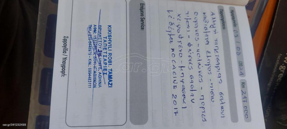 | Eιναι με καινουργιο δερματινο σαλονι απιστευτου χρωματος!!!!!!εχει αλλο κινιτηρα ΜΕ 2800 cc κινιτηρα με δυναμομετρηση 242 hp!!!εχει υγραεριο 3 χρονων που το καθιστα πολυ οικονομικο!!!!Σημα 615 πληρωμενο για το 2024!!!Αισθητηρες παρκαρισματος ,αυτοματο πιλοτο,διζωνικο κλιμα full service εχει κανει τα παντα!!!! ολοκαινουγγια λαστιχα 2024!!!!εχουν αλαχτει καινουργια τα παντα!!!εχει ΚΤΕΟ εως το 2026!!!Εχει ηλεκτρικη οροφη που δουλευει αριστα!!!ΟΘΟΝΗ!!!Συναγερμος και χειριστηρια!!!Ειναι πραγματικα μοναδικο χωρις καμμια υπερβολη!!!!Εξωτερικα σε αριστη κατασταση!!!! |