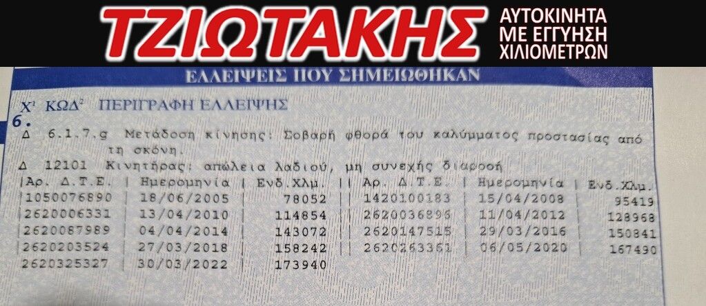 | ΤΟ ΟΧΗΜΑ ΕΧΕΙ ΠΕΡΙΦΕΡΕΙΑΚΕΣ ΓΡΑΤΖΟΥΝΙΕΣ ΕΛΛΗΝΙΚΗΣ ΑΝΤΙΠΡΟΣΩΠΕΙΑΣ Τηλέφωνο ΕΓΓΥΗΣΗ ΧΙΛΙΟΜΕΤΡΩΝ ΜΕ ΑΝΑΓΡΑΦΗ ΣΤΟ ΤΙΜΟΛΟΓΙΟ ΠΩΛΗΣΗΣ Η ΑΠΟΔΕΙΞΗ ΛΙΑΝΙΚΗΣ ΟΦΕΛΟΣ ΑΠΟΣΥΡΣΗΣ 300-1000 ΕΥΡΩ ΑΝΑΛΟΓΑ ΤΗΝ ΚΑΤΑΣΤΑΣΗ ΤΟΥ ΑΥΤΟΚΙΝΗΤΟΥ ΣΑΣ. ΔΕΚΤΟΣ ΚΑΘΕ ΕΛΕΓΧΟΣ ΑΓΟΡΑΖΟΥΜΕ ΚΑΙ ΑΝΤΑΛΛΑΣΣΟΥΜΕ ΤΟ ΑΥΤΟΚΙΝΗΤΟ ΣΑΣ ΠΑΡΑΚΑΛΟΥΜΕ ΝΑ ΠΡΟΗΓΕΙΤΑΙ ΤΗΛΕΦΩΝΗΜΑ ΠΡΙΝ ΤΗΝ ΕΛΕΥΣΗ ΣΑΣ ΣΤΗΝ ΕΚΘΕΣΗ ΑΥΤΟΚΙΝΗΤΩΝ ΛΟΓΩ ΣΥΧΝΗΣ ΑΠΟΥΣΙΑΣ ΩΡΕΣ ΕΠΙΚΟΙΝΩΝΙΑΣ 9.00 ΕΩΣ 22.00 ΚΑΙ ΣΑΒΒΑΤΟΚΥΡΙΑΚΑ ΤΑ ΑΥΤΟΚΙΝΗΤΑ ΜΠΟΡΟΥΝ ΝΑ ΔΕΙΓΜΑΤΙΣΤΟΥΝ ΚΑΙ ΑΛΛΕΣ ΩΡΕΣ ΕΚΤΟΣ ΩΡΑΡΙΟΥ ΚΑΙ ΤΟ ΣΑΒΒΑΤΟΚΥΡΙΑΚΟ ΚΑΤΟΠΙΝ ΤΗΛΕΦΩΝΙΚΟΥ ΡΑΝΤΕΒΟΥ *** ΩΡΑΡΙΟ ΛΕΙΤΟΥΡΓΙΑΣ *** ΔΕΥΤΕΡΑ: 10:00-14:00 ΤΡΙΤΗ: 10:00-14:00 & 17:30-20:00 ΤΕΤΑΡΤΗ: 10:00-14:00 ΠΕΜΠΤΗ: 10:00-14:00 & 17:30-20:00 ΠΑΡΑΣΚΕΥΗ: 10:00-14:00 & 17:30-20:00 ΣΑΒΒΑΤΟ: 10:00-14:00 ΚΥΡΙΑΚΗ: ΚΛΕΙΣΤΑ |