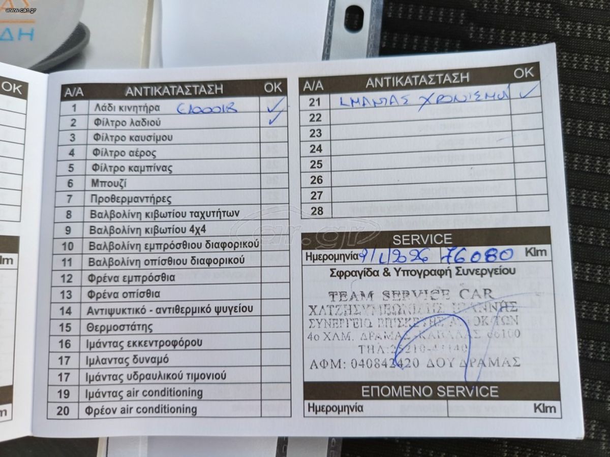 | ΕΙΝΑΙ ΣΕ ΆΡΙΣΤΗ ΚΑΤΆΣΤΑΣΗ ΚΑΙ ΠΩΛΕΊΤΑΙ ΕΚ ΜΈΡΟΥΣ ΙΔΙΩΤΗ ΠΕΛΆΤΗ ΜΑΣ. ΕΧΕΙ ΒΙΒΛΙΟ ΣΕΡΒΙΣ ΚΑΙ ΜΟΛΙΣ ΑΛΑΞΕ ΙΜΑΝΤΑ ΧΡΟΝΙΣΜΟΥ ΚΑΙ ΣΕΡΒΙΣ ΛΑΔΙΑ ΦΙΛΤΡΑ. ΜΕ ΜΌΝΟ 77 ΧΙΛΙΆΔΕΣ ΧΙΛΙΌΜΕΤΡΑ ΈΧΕΙ ΚΑΙ ΤΈΛΗ ΚΥΚΛΟΦΟΡΊΑΣ ΤΟΥ 2026 ΠΛΗΡΩΜΈΝΑ, ΘΈΛΕΙ ΜΟΝΟ ΜΕΤΑΒΊΒΑΣΗ.ΕΠΙΣΚΕΨΗ ΚΑΤΟΠΙΝ ΡΑΝΤΕΒΟΥ,ΕΥΧΑΡΙΣΤΩ. |