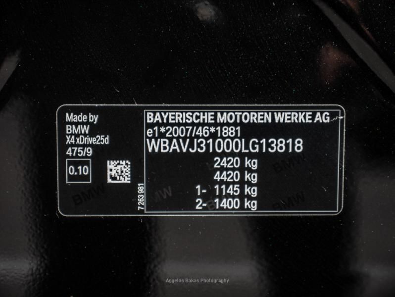 | - NEW FACE LIFT X4 x-Drive 25d M-Sport 231hp PANORAMA -Vehicle Identification Number. WBAVJ31000LG13818 -Power. 170 KW 231HP -Paint Color/Carmaker Color. Black / 475 - BLACK SAPPHIRE METALLIC Equipment Pack Pack aérodynamique m-technic Leather upholstery Park assistant Equipment Sport Pack M sport package Clima automatique 3 zones Front sport seats Sport suspensions (m-technic) Attention-Assist driving assistant Panoramic roof Gearbox type (8 positions) |