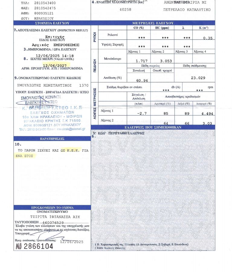 | Τέλη κυκλοφορίας | 0 |