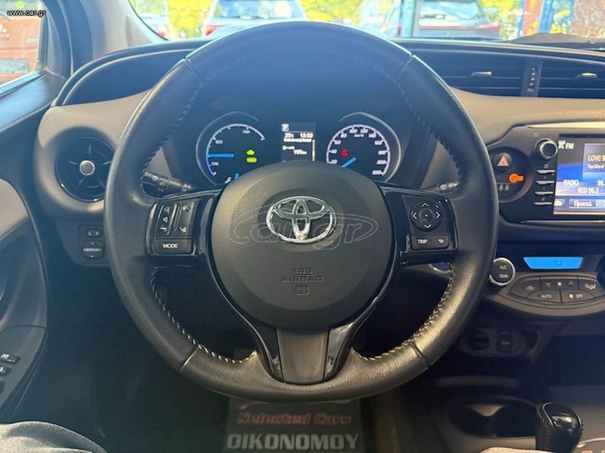 | Η Toyota είναι συνώνυμο της ποιότητας και της προόδου. Αυτό το Toyota Yaris 1.5 Hybrid Collection Bi-Tone ξεχωρίζει για την υβριδική του τεχνολογία, που συνδυάζει κινητήρα βενζίνης και ηλεκτροκινητήρα με μπαταρία που φορτίζει κατά την οδήγηση ή το φρενάρισμα. Το αποτέλεσμα; Εξαιρετικά χαμηλή κατανάλωση, αθόρυβη λειτουργία και οικολογική συνείδηση. Η ειδική έκδοση Collection προσφέρει πλούσιο εξοπλισμό, ενώ η δίχρωμη εμφάνιση Bi-Tone χαρίζει μια κομψή και ξεχωριστή προσωπικότητα. Με προηγμένα συστήματα ασφαλείας που παρακολουθούν συνεχώς τον δρόμο και το περιβάλλον, το Yaris αυτό φροντίζει να απολαμβάνετε κάθε διαδρομή με άνεση και σιγουριά ✔ΙΣΤΟΡΙΚΟ : ▪ΙΤΑΛΙΚΟ ΟΧΗΜΑ ▪ΙΔΙΟΚΤΗΤΗΣ 1 ▪ΓΝΗΣΙΑ ΧΙΛΙΟΜΕΤΡΑ ▪ΤΕΛΕΥΤΑΙΟ TUV ΕΞΩΤΕΡΙΚΟΥ ✔ΚΑΤΑΣΤΑΣΗ / ΓΕΝΙΚΕΣ ΠΛΗΡΟΦΟΡΙΕΣ : ▪ΠΟΛΥ ΚΑΛΑ ΣΥΝΤΗΡΗΜΕΝΟ ΟΧΗΜΑ ▪ΜΗΧΑΝΙΚΑ ΑΡΙΣΤΟ ▪ΔΕΚΤΟΣ ΚΑΘΕ ΕΛΕΓΧΟΣ ▪ΔΥΝΑΤΟΤΗΤΑ TEST DRIVE ▪ΑΤΡΑΚΑΡΙΣΤΟ ▪4/5 ΠΟΡΤΕΣ ✔ΚΙΝΗΤΗΡΑΣ / ΜΕΤΑΔΟΣΗ : ▪ΚΥΒΙΣΜΟΣ ΚΙΝΗΤΗΡΑ : 1.497 cc ▪ΙΠΠΟΔΥΝΑΜΗ : 101 hp ▪ΚΙΒΩΤΙΟ ΤΑΧΥΤΗΤΩΝ : AYTOMATO ΚΙΒΩΤΙΟ ΤΑΧΥΤΗΤΩΝ e-CVT ✔ΚΑΤΑΝΑΛΩΣΗ ΕΝΕΡΓΕΙΑΣ : ▪ΤΥΠΟΣ ΚΑΥΣΙΜΟΥ : ΥΒΡΙΔΙΚΟ ΒΕΝΖΙΝΗ ▪ΠΕΡΙΒΑΛΛΟΝΤΙΚΗ ΚΑΤΗΓΟΡΙΑ : EURO 6W ▪ΕΚΠΟΜΠΕΣ CO2 : 82g/km ➖ ΕΞΟΠΛΙΣΜΟΣ: ✔ΑΝΕΣΗ & ΕΥΚΟΛΙΑ : ▪PDC - ΒΟΗΘΕΙΑ ΚΑΜΕΡΑΣ ΣΤΑΘΜΕΥΣΗΣ ΠΙΣΩ ▪ΈΓΧΡΩΜΗ ΟΘΟΝΗ TFT 4.2" (Πίνακας οργάνων) ▪ΚΕΝΤΡΙΚΗ ΟΘΟΝΗ ΠΟΛΛΑΠΛΩΝ ΕΠΙΛΟΓΩΝ ΑΦΗΣ 7'' ▪ΣΥΣΤΗΜΑ ΣΥΓΚΡΑΤΗΣΗΣ ΟΧΗΜΑΤΟΣ-Auto hold ▪ΑΥΤΟΜΑΤΟΣ ΕΛΕΓΧΟΣ ΚΛΗΜΑΤΙΣΜΟΥ A/C DUAL ▪ΑΥΤΟΜΑΤΟ ΠΙΛΟΤΟ-Cruise control ▪ΣΥΣΤΗΜΑ ΕΞΥΠΝΗΣ ΕΚΚΙΝΗΣΗΣ ▪ΜΠΟΥΤΟΝ ΕΚΚΙΝΗΣΗΣ ΚΙΝΗΤΗΡΑ ▪ΑΣΥΡΜΑΤΗ ΕΚΚΙΝΗΣΗ ΚΙΝΗΤΗΡΑ-Keyless GO ▪ΣΥΣΤΗΜΑ ΕΚΚΙΝΗΣΗΣ/ΠΑΥΣΗΣ ΚΙΝΗΤΗΡΑ-Eco start/stop ▪ΠΡΟΓΡΑΜΜΑΤΑ ΟΔΗΓΗΣΗΣ ECO MODE ▪ΠΡΟΓΡΑΜΜΑΤΑ ΟΔΗΓΗΣΗΣ EV MODE ▪ΚΕΝΤΡΙΚΟ ΚΛΕΙΔΩΜΑ ΜΕ ΤΗΛΕΧΕΙΡΙΣΜΟ ▪ΗΛΕΚΤΡΙΚΑ ΠΑΡΑΘΥΡΑ ΕΜΠΡΟΣ ▪ΗΛΕΚΤΡΙΚΑ ΠΑΡΑΘΥΡΑ ΠΙΣΩ ▪ΑΝΤΙ-ΘΑΜΒΩΤΙΚΑ ΠΙΣΩ ΠΑΡΑΘΥΡΑ ▪ΗΛΕΚΤΡΙΚΑ ΡΥΘΜΙΖΟΜΕΝΟΙ ΠΛΑΙΝΟΙ ΚΑΘΡΕΠΤΕΣ ▪ΗΛΕΚΤΡΙΚΗ ΑΝΑΔΙΠΛΩΣΗ ΠΛΑΙΝΩΝ ΚΑΘΡΕΦΤΩΝ ▪ΑΥΤΟΜΑΤΟΣ ΑΝΤΙΘΑΜΒΩΤΙΚΟΣ ΕΣΩΤΕΡΙΚΟΣ ΚΑΘΡΕΠΤΗΣ ΟΠΙΣΘΟΠΟΡΕΙΑΣ ▪ΗΛΕΚΤΡΙΚΑ ΘΕΡΜΑΙΝΟΜΕΝΟ ΠΙΣΩ ΠΑΡΜΠΡΙΖ ▪ΑΙΣΘΗΤΗΡΑ ΦΩΤΟΣ / Light sensor ▪ΑΙΣΘΗΤΗΡΑ ΒΡΟΧΗΣ / Rain sensor ▪ΦΩΤΑ ΗΜΕΡΑΣ LED ▪ΕΜΠΡΟΣ ΦΩΤΑ ▪ΠΡΟΒΟΛΕΙΣ ΟΜΙΧΛΗΣ ▪ΠΙΣΩ ΦΩΤΑ LED ▪ΦΩΤΑ ΦΡΕΝΩΝ LED ▪ΡΥΘΜΙΣΗ ΥΨΟΥΣ ΦΩΤΩΝ ▪ENERGY SAVER ΕΣΩΤΕΡΙΚΟΥ ΦΩΤΙΣΜΟΥ ▪ΕΝΔΕΙΞΗ ΕΞΩΤΕΡΙΚΗΣ ΘΕΡΜΟΚΡΑΣΙΑΣ ▪ΔΕΡΜΑΤΙΝΟ ΤΙΜΟΝΙ ▪ΤΙΜΟΝΙ ΠΟΛΛΑΠΛΩΝ ΛΕΙΤΟΥΡΓΙΩΝ ▪ΥΔΡΑΥΛΙΚΟ/ΗΛΕΚΤΡΙΚΟ ΤΙΜΟΝΙ ▪ΡΥΘΜΙΖΟΜΕΝΟ ΤΙΜΟΝΙ ΚΑΘΕ ΥΨΟΣ ▪ΚΑΘΙΣΜΑΤΑ BUCKET ▪ΟΣΦΥΙΚΗ ΥΠΟΣΤΗΡΙΞΗ ▪ΔΙΑΙΡΟΥΜΕΝΑ ΠΙΣΩ ΚΑΘΙΣΜΑΤΑ ▪ΑΕΡΟΤΟΜΗ ΟΡΟΦΗΣ ▪ΖΑΝΤΕΣ 16" ✔ΨΥΧΑΓΩΓΙΑ & ΠΟΛΥΜΕΣΩΝ Multimedia ▪ΣΥΝΔΕΣΙΜΟΤΗΤΑ Smartphone ▪Bluetooth ▪ΨΗΦΙΑΚΟ ΠΙΛΟΤΗΡΙΟ ▪ΨΗΦΙΑΚΟ ΡΑΔΙΟΦΩΝΟ ▪ΕΝΣΩΜΑΤΩΜΕΝΗ ΡΟΗ ΜΟΥΣΙΚΗΣ ▪ΣΥΣΤΗΜΑ ΗΧΟΥ ΠΟΛΥΜΕΣΩΝ 6 HXEIΩΝ ▪ΘΥΡΑ USB-MP3 ▪ΘΥΡΑ AUX-IN ▪ΘΥΡΑ USB-ΦΟΡΤΙΣΗΣ ▪BLUETOOTH ΕΝΣΩΜΑΤΩΜΕΝΟ ΣΥΣΤΗΜΑ ΤΗΛΕΦΩΝΟΥ ▪ΕΝΣΩΜΑΤΩΜΕΝΟΣ ΥΠΟΛΟΓΙΣΤΗΣ ΤΑΞΙΔΙΟΥ / TRIP COMPUTER ✔ΑΣΦΑΛΕΙΑ : ▪AEB - ΑΥΤΟΜΑΤΗ ΛΕΙΤΟΥΡΓΕΙΑ ΠΕΔΗΣΗΣ ΕΚΤΑΚΤΗΣ ΑΝΑΓΚΗΣ ▪TPMS - ΣΥΣΤΗΜΑ ΠΑΡΑΚΟΛΟΥΘΗΣΗΣ ΠΙΕΣΗΣ ΕΛΑΣΤΙΚΩΝ ▪RSA - ΑΝΑΓΝΩΡΙΣΗ ΣΗΜΑΤΩΝ ΠΙΝΑΚΙΔΩΝ Κ.Ο.Κ. ▪AHB- ΥΠΟΒΟΗΘΗΣΗ ΥΨΗΛΗΣ ΔΕΣΜΗΣ ΠΡΟΒΟΛΕΩΝ AUTO ▪LDA - ΕΙΔΟΠΟΙΗΣΗ ΑΛΛΑΓΗΣ ΛΩΡΙΔΑΣ ▪PCS - ΣΥΣΤΗΜΑ ΠΡΟ-ΣΥΓΚΡΟΥΣΗΣ ▪MOD - ΕΛΕΓΧΟΣ ΚΙΝΟΥΜΕΝΟΥ ΑΝΤΙΚΕΙΜΕΝΟΥ ▪FCW - ΠΡΟΕΙΔΟΠΟΙΗΣΗ ΕΜΠΡΟΣ ΣΥΓΚΡΟΥΣΗΣ ▪ABS - ΣΥΣΤΗΜΑ ΑΝΤΙΜΠΛΟΚΑΡΙΣΜΑΤΟΣ ΤΡΟΧΩΝ ▪VSC/TRC - ΠΡΟΓΡΑΜΜΑ ΣΤΑΘΕΡΟΤΗΤΑΣ ΜΕ ΕΛΕΓΧΟ ΠΡΟΣΦΥΣΗΣ ▪ESP - ΕΛΕΓΧΟΥ ΠΡΟΣΦΥΣΗΣ ▪HILL START ASSIST - ΥΠΟΒΟΗΘΗΣΗ ΕΚΙΝΝΗΣΗΣ ΣΕ ΑΝΩΦΕΡΕΙΑ ▪ESP - ΗΛΕΚΤΡΟΝΙΚΟΣ ΕΛΕΓΧΟΣ ΕΥΣΤΑΘΕΙΑΣ ▪LSD - ΔΙΑΦΟΡΙΚΟ ΠΕΡΙΟΡΙΣΜΕΝΗΣ ΟΛΙΣΘΗΣΗΣ ▪Immobilizer- ΑΚΙΝΗΤΟΠΟΙΗΤΗΣ ΚΙΝΗΤΗΡΑ ▪SRS - ΑΕΡΟΣΑΚΟΣ ΟΔΗΓΟΥ ▪SRS - ΑΕΡΟΣΑΚΟΣ ΣΥΝΟΔΗΓΟΥ ▪SRS - ΑΕΡΟΣΑΚΟΙ ΠΛΕΥΡΙΚΟΙ ΚΟΥΡΤΙΝΑ ▪SRS - ΑΕΡΟΣΑΚΟΙ ΓΟΝΑΤΩΝ ΠΟΔΙΟΥ ▪