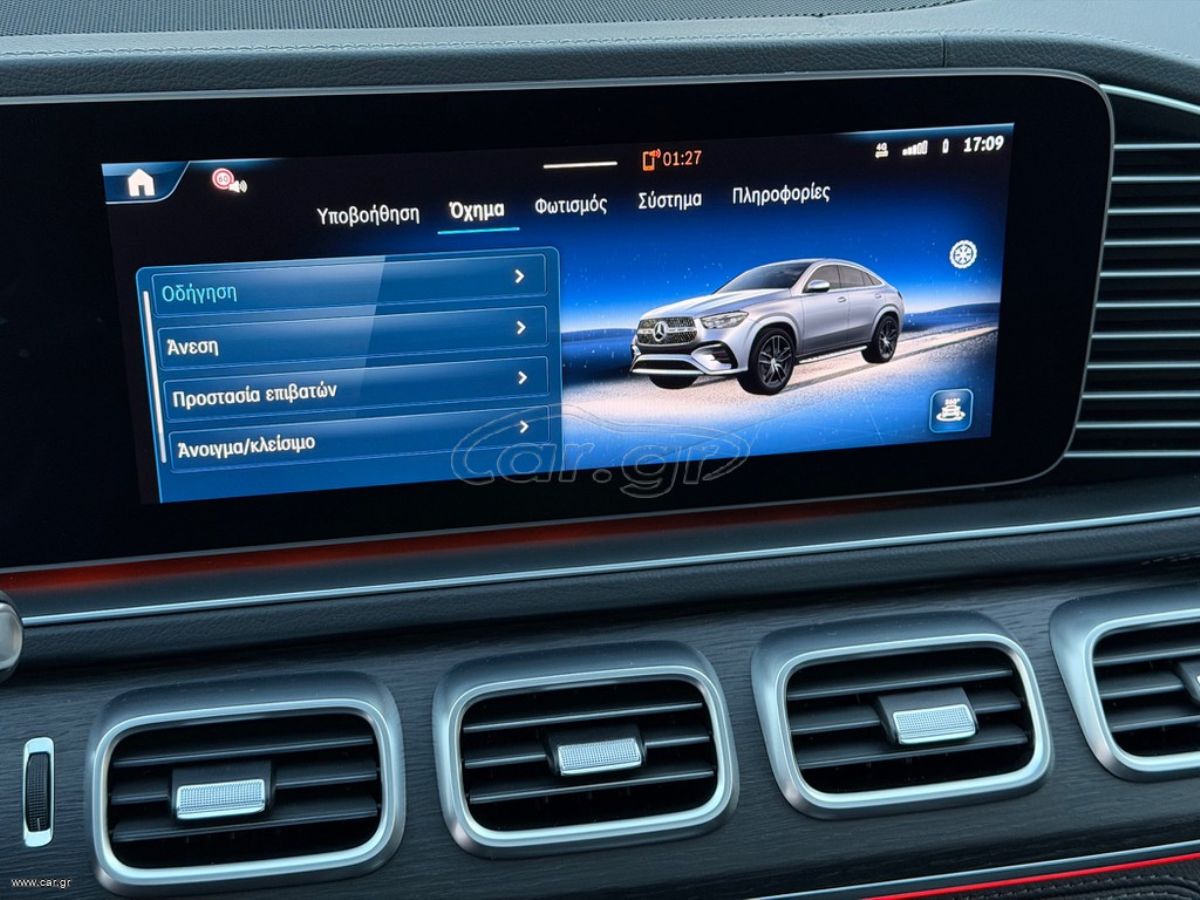 | Αυτονομία μπαταρίας 70 χλμ Χρόνος φόρτισης 12 Ώρες Χρόνος γρήγορης φόρτισης 1 Ώρα MERCEDES BENZ GLE 350 de COUPE 4MATIC ΧΡΩΜΑ ΕΞΩΤ. OBSIDIAN BLACK ΧΡΩΜΑ ΕΣΩΤ. ΔΕΡΜΑ NAPPA ΜΑΥΡΟ - ΣΥΣΤΗΜΑ ΑΝΑΓΝΩΡΙΣΗΣ ΠΙΝΑΚΙΔΩΝ - ADAPTIVE HIGHBEAM ASSIST PLUS - ALUMINIUM LOOK ΦΩΤΙΖΟΜΕΝΑ ΣΚΑΛΟΠΑΤΙΑ - WIDESCREEN COCKPIT - CHROME-PACKAGE INTERIOR - ΑΤΜΟΣΦΑΙΡΙΚΟΣ ΦΩΤΙΣΜΟΣ - ΠΑΚΕΤΟ AIR BALANCE - AMG LINE INTERIOR - ΣΠΟΡ ΠΟΛΥΛΕΙΤΟΥΡΓΙΚΟ ΤΙΜΟΝΙ ΜΕ ΕΠΕΝΔΥΣΗ ΔΕΡΜΑΤΟΣ NAPPA - ΑΤΜΟΣΦΑΙΡΙΚΟΣ ΦΩΤΙΣΜΟΣ - ΠΑΚΕΤΟ ΜΝΗΜΗΣ ΚΑΘΙΣΜΑΤΩΝ ΕΜΠΡΟΣ - ΚΛΙΜΑΤΙΖΟΜΕΝΑ ΚΑΘΙΣΜΑΤΑ ΠΙΣΩ - ΠΑΝΟΡΑΜΙΚΗ ΓΥΑΛΙΝΗ ΗΛΙΟΡΟΦΗ - HEAD-UP DISPLAY - ΠΑΚΕΤΟ AIRMATIC ΑΕΡΑΝΑΡΤΗΣΗ - MULTIBEAM LED - MBUX INTERIOR ASSISTANT - BURMESTER SURROUND SOUNDSYSTEM - MAGIC VISION CONTROL - ΔΙΑΚΟΣΜΟΣ ΕΣΩΤ. ΞΥΛΟ - HANDS FREE ACCESS - KEYLESS GO - ΠΑΚΕΤΟ DRIVING ASSISTANT PLUS - AMG LINE - ΕΝΕΡΓΗ ΥΠΟΒΟΗΘΗΣΗ PARKING - PARK ASSIST ΜΕ ΚΑΜΕΡΑ 360 ΜΟΙΡΕΣ - URBAN GUARD SYSTEM PLUS - ZANTEΣ 22'' AMG |